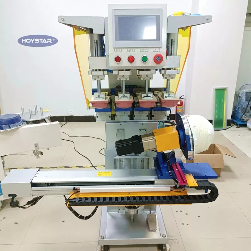 Приобретите индивидуальную 4-цветную тампопечатную машину для шлема от Dongguan Hoystar Machinery Co., Ltd., которая является одним из производителей и поставщиков в Китае. Эта 4-цветная тампопечатная машина HOYSTAR для шлемов оснащена сенсорной панелью управления ПЛК, простой в эксплуатации. Эта машина оснащена сервоприводом для автоматической ротационной печати, позволяющей печатать на 1, 2 или 4 сторонах шлемов. Рабочий стол перемещается влево/вправо, поворотный угол, высоту продукта можно регулировать. Каждая печатающая головка регулируется независимо и может быть настроена отдельно.