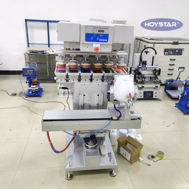 Являясь профессиональным китайским производителем и поставщиком, 6-цветная тампопечатная машина HOYSTAR для защитных касок оснащена сенсорной панелью управления ПЛК, простой в эксплуатации. Эта машина предназначена для печати на изогнутых и неровных поверхностях, таких как шлемы. Эта универсальная машина идеально подходит для различных отраслей промышленности, включая оборудование для обеспечения безопасности и защиты, спортивное оборудование, автомобильные детали, рекламную продукцию, корпуса для электронных устройств и игрушки. И имеют регулируемую высоту стола для размещения продуктов различных размеров.