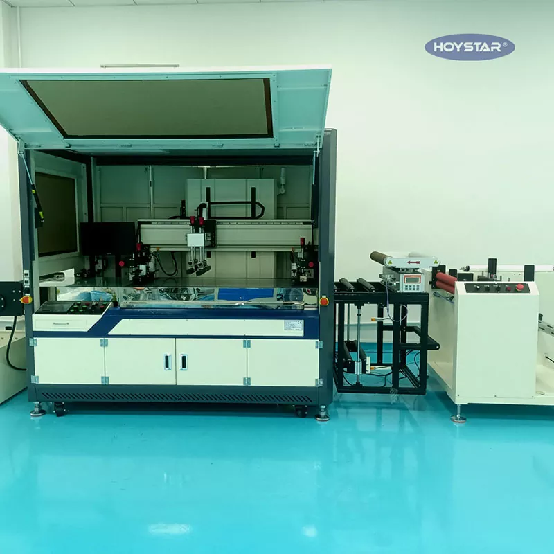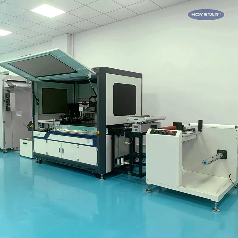 Компания HOYSTAR поставляет машины для трафаретной печати в рулонах пленки. Машина оснащена фотоэлектрической регистрацией, сенсорным управлением ПЛК, настраиваемыми настройками, подходит для печати на различных пленках, лентах и т. д.