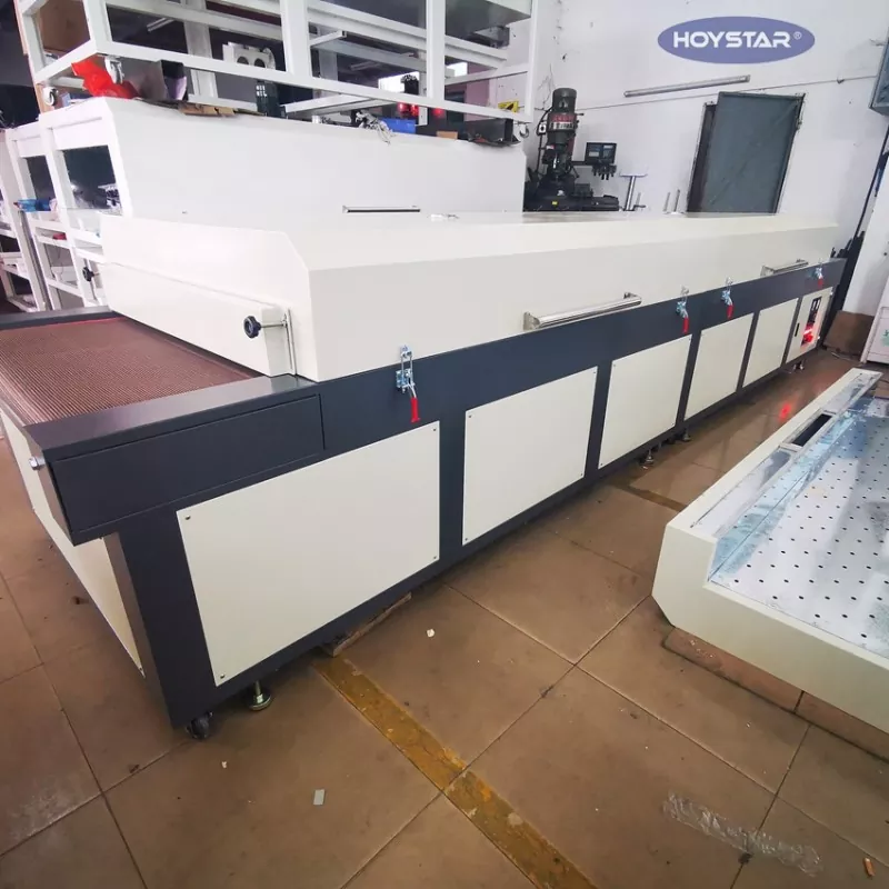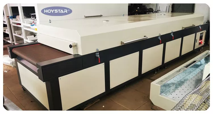 Как профессиональный производитель в Китае, мы хотели бы предоставить вам высокоэффективную большую инфракрасную сушильную машину HOYSTAR с ленточным конвейером. Подходит для сушки различных продуктов, таких как текстиль, флаги, баннеры, алюминиевые листы, стекло, бумага и пластик, после таких процессов, как трафаретная печать, покраска, нанесение клея горячего отверждения, струйная печать и т. д.
