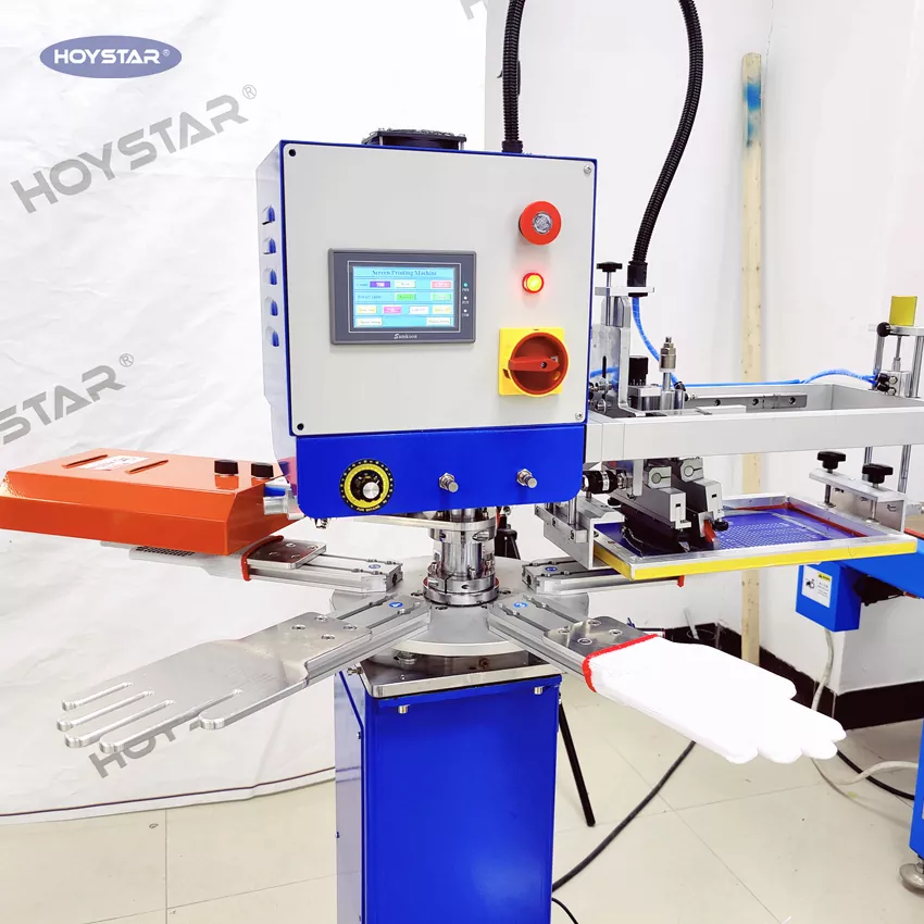 Являясь профессиональным производителем и поставщиком, машина для трафаретной печати HOYSTAR High Rapid Non Slip Gloves предназначена для применения в текстильно-трикотажной промышленности. Со скоростью до 1000 шт./час он подходит для печати на рабочих перчатках, хлопчатобумажных, трикотажных перчатках и т. д. Благодаря поворотному рабочему столу очень удобно загружать и выгружать перчатки. Управление с сенсорным экраном ПЛК, очень простое в эксплуатации. Машина, оснащенная системой сушки, хорошо сушит силикон и чернила.