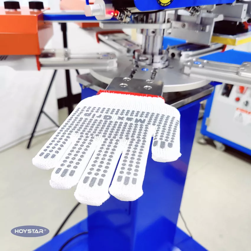 Как профессиональный производитель в Китае, мы хотели бы предоставить вам высокоскоростную машину для трафаретной печати HOYSTAR с нескользящими перчатками. Наши машины оснащены ПЛК и сенсорным управлением и в основном используются для печати различных типов перчаток. Машина может печатать на хлопчатобумажных перчатках, трикотажных перчатках и т. д. Машина оснащена сушильной печью, которая хорошо сушит силикон и чернила.