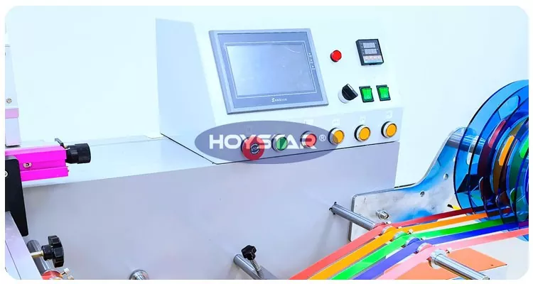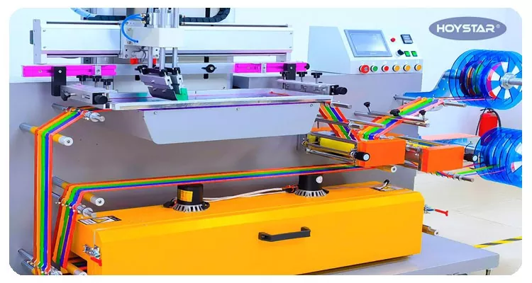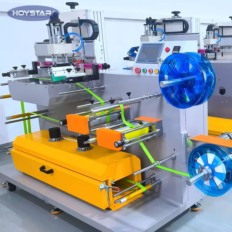 HOYSTAR — надежный производитель и поставщик в Китае; Эта машина для трафаретной печати HOYSTAR Roll To Roll предназначена для печати на различных лентах. Режим двойной мотовины обеспечивает стабильную подачу и бесперебойную работу. Управление с помощью сенсорного экрана ПЛК, удобный интерфейс для безопасной и интуитивно понятной работы. Двухслойная сушильная печь с циркуляцией горячего воздуха позволяет быстро и равномерно высушить чернила.