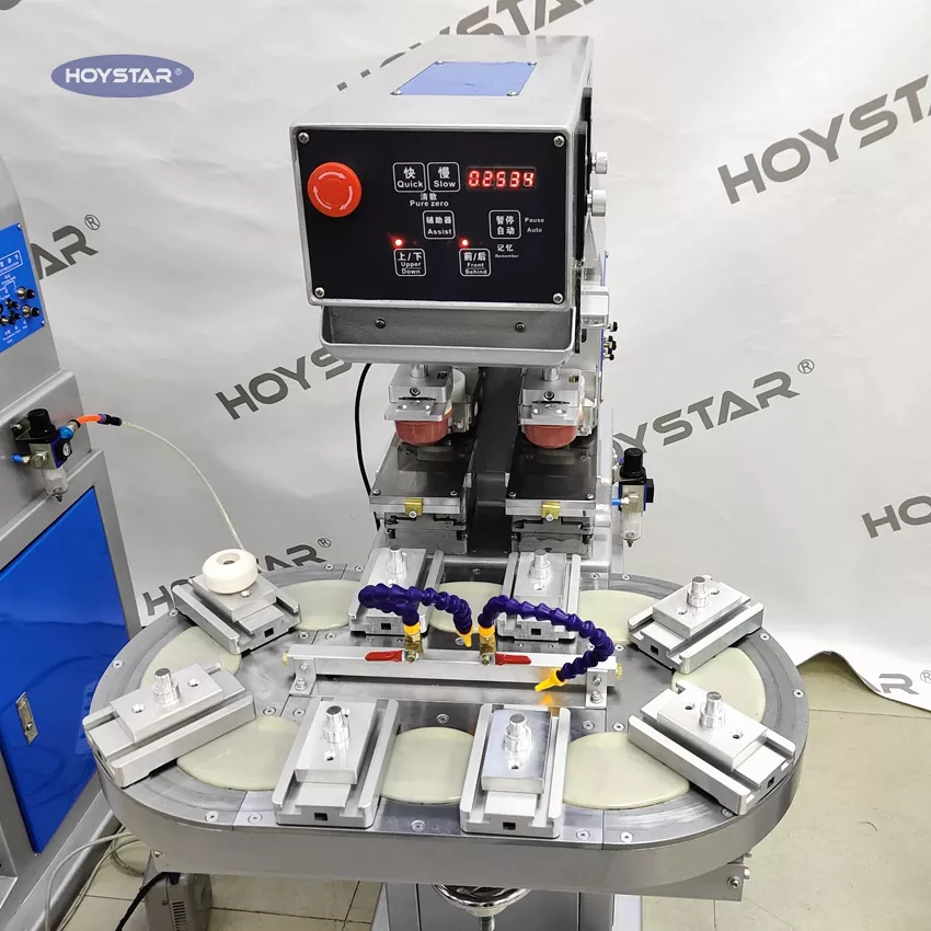 HOYSTAR — надежный производитель и поставщик в Китае; Двухцветная тампопечатная машина с ротационным столом HOYSTAR — это высокопроизводительное и экономичное печатное оборудование. Машина обеспечивает удобную регулировку, стабильную работу и хороший эффект печати. Машина обеспечивает стабильное качество печати и подходит для печати широкого спектра изделий, таких как электроника, пластиковые корпуса, скобяные изделия, канцелярские товары, предметы декоративно-прикладного искусства, а также небольшие логотипы на поверхности подарков и многое другое. Может удовлетворить разнообразные требования клиентов к двухцветной печати.