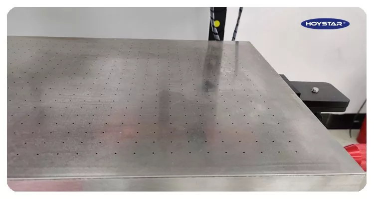 12. Высокопрочный рабочий стол с равномерно распределенными всасывающими отверстиями и сильным вакуумным поглощением для точной регистрации.